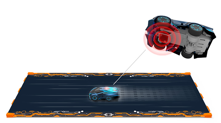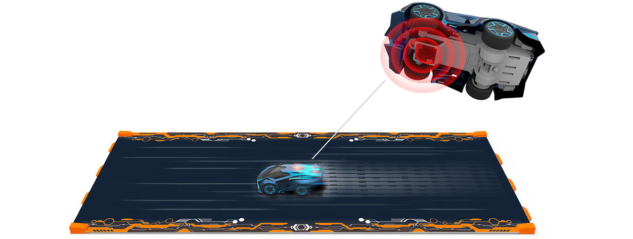 Software on the Supercars decode track markings, control driving behaviors, and communicates with the device. Wireless communication with the device makes the car react quickly to controller inputs.